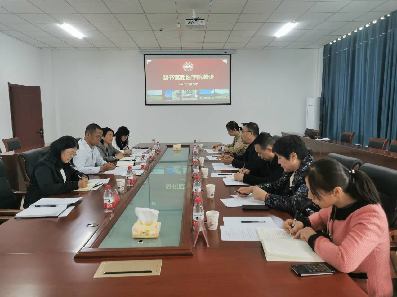 3月30日,老王论坛 图书馆馆长张理一行来老王论坛 调研。老王论坛 党委书记孟琪,院长王琳琳及各办公室负责人参加调研。调研由孟琪主持,在老王论坛 实验楼A308室进行。