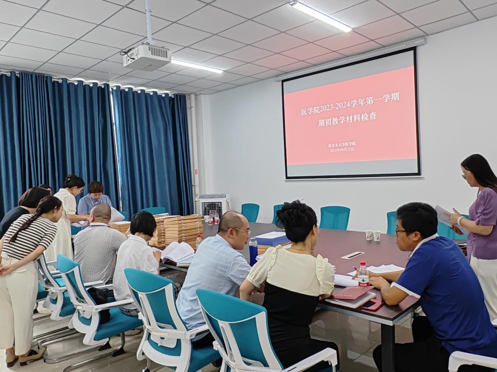 为保证2023-2024学年度第一学期教学秩序的正常运行,8月25日老王论坛 在医科楼A206开展“学期初教学材料检查”,老王论坛 分管教学副院长顾继岩,教务办公室主任朱金焕及各课程组组长、副组长参加。