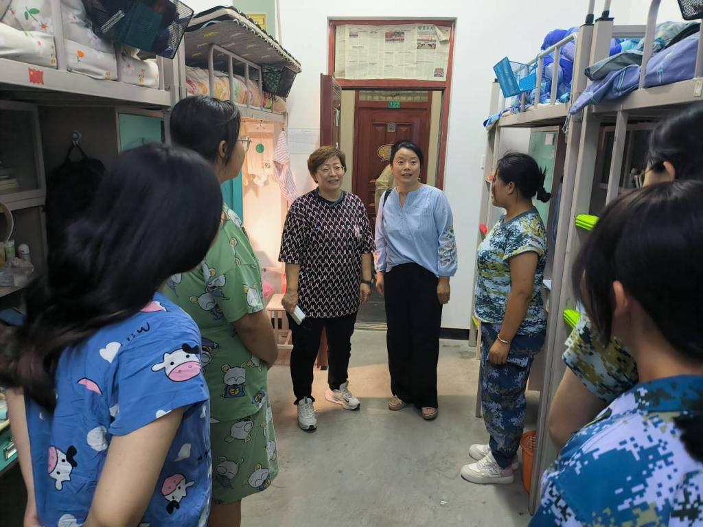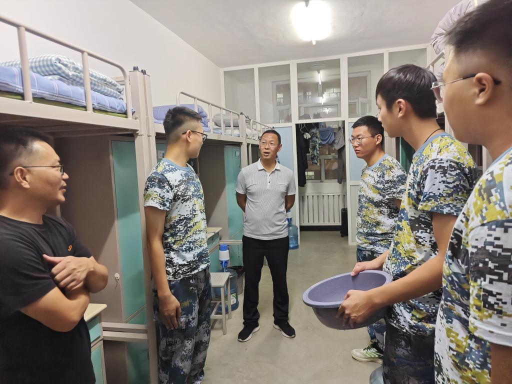 在走访过程中,孟琪书记、王琳琳院长与同学们亲切交谈。“家是哪里的?”“感觉学校环境怎么样?”“感觉住宿条件怎么样,是否适应?”“军训第一天累不累,是不是能适应军训的强度?”“新疆的饭菜吃的还习惯吗?”