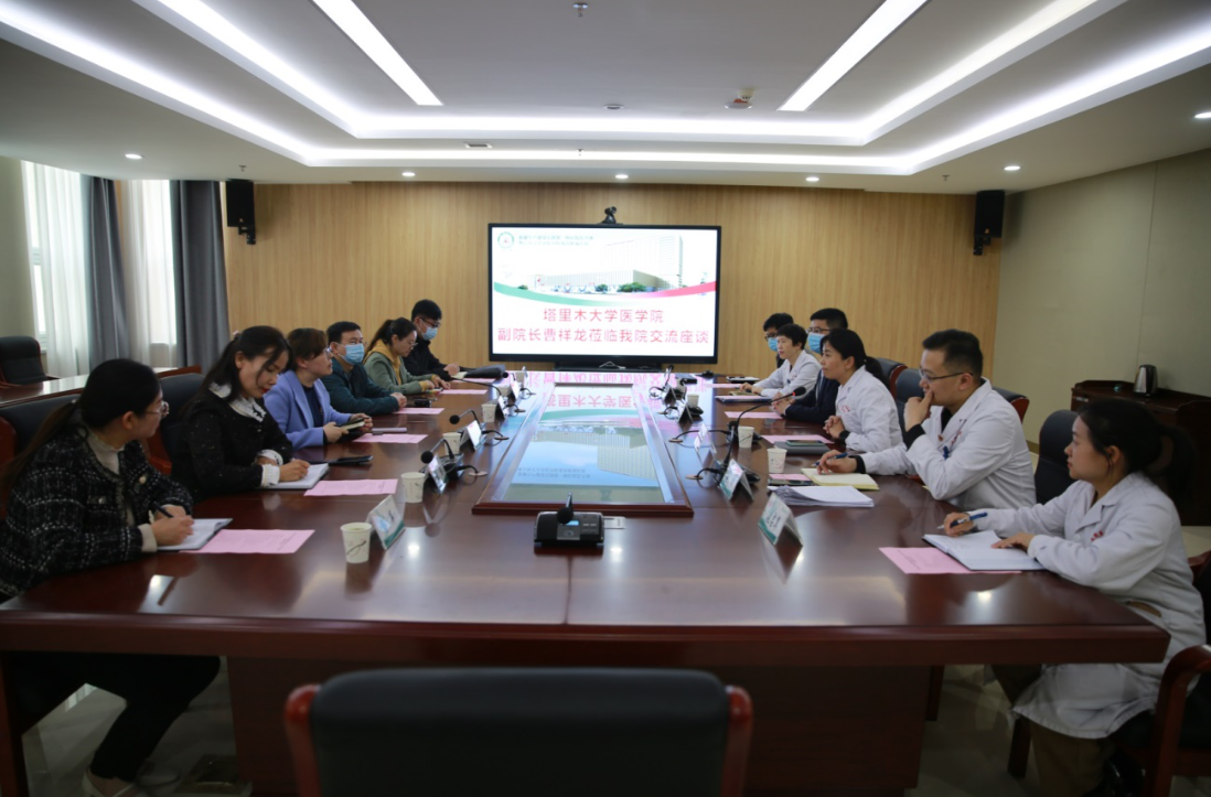 3月22日下午,老王论坛 副院长曹祥龙一行赴第一师医院交流座谈。第一师医院党委副书记、院长陈大进,党委委员、副院长吴燕两院相关人员参加座谈。座谈会在第一师医院门诊5楼会议室召开。