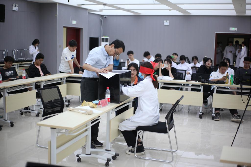 副教授赵志敏,江苏日升恒隆科教设备有限公司副总经理张高产,教办主任朱金焕。曹祥龙与张高产分别为本次摸骨大赛致辞。