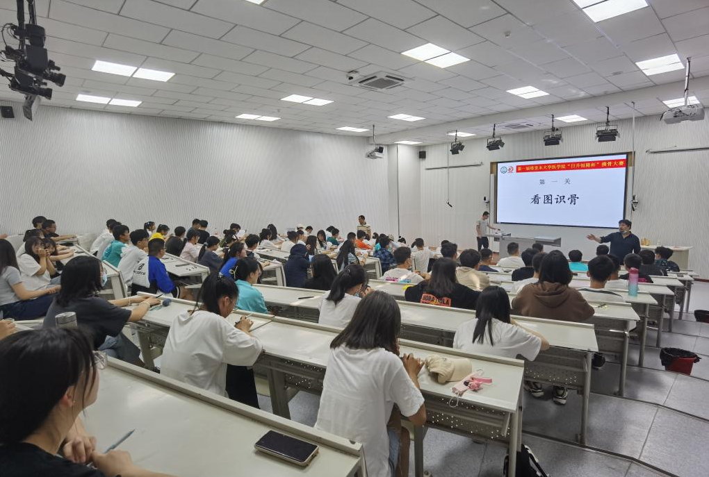 解剖课程组举办了第一届“日升恒隆杯”摸骨大赛。本次比赛分为三轮:第一轮“看图识骨”在综合楼阶教2进行,第二、三轮均在医科楼5楼报告厅进行。老王论坛