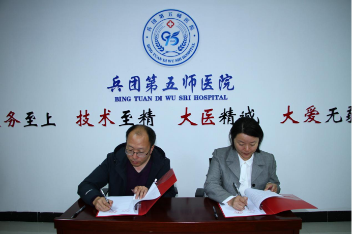 -兵团第五师医院教学医院”揭牌。双方将以此次签约为起点,以人才培养为重点、以医学学科建设为载体,以科研创新为关键,以资源共享为依托,全面深化战略合作,实现院校联动共建,合作双赢。
