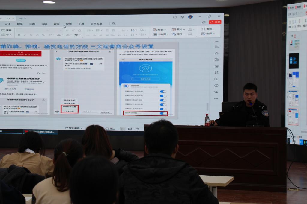 10月18日下午,阿拉尔反诈中心民警李思潮警官来院给大一、大二全体学生,大三全体班委作《防范电信网络诈骗》专题讲座,全体辅导员、各班班主任参加。
