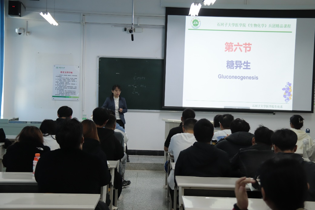 16日上午,李冬妹教授在综合楼514教室进行《生物化学》示范授课;李曼副教授在综合楼413教室进行《病理学》示范授课。