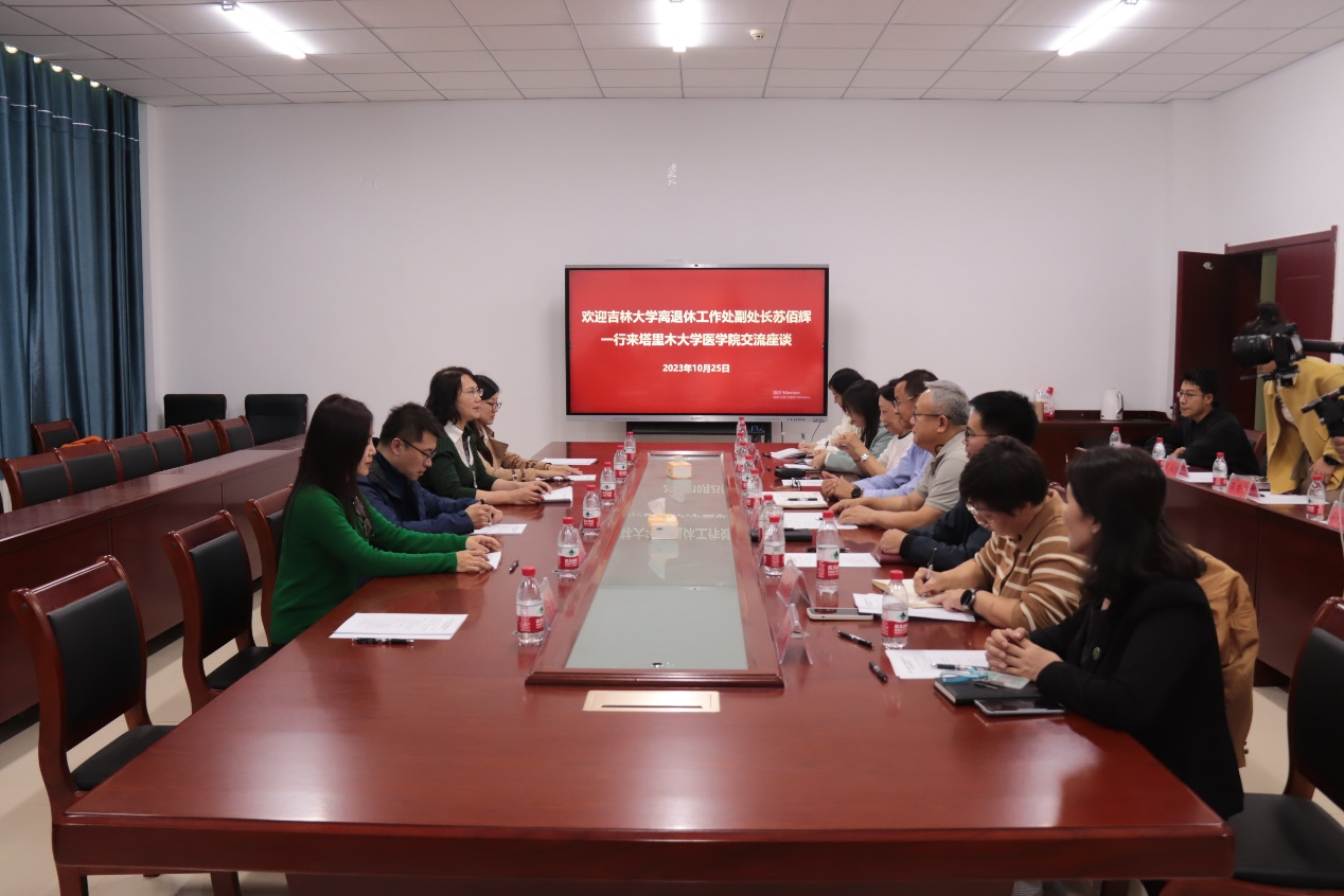 10月25日,吉林大学离退休工作处副处长苏佰辉一行来老王论坛 探望慰问援疆银龄教师崔丽、石卓,并在医科楼A308与老王论坛 领导、师生代表进行座谈。座谈由分院党总支副书记、院长谢建新主持。