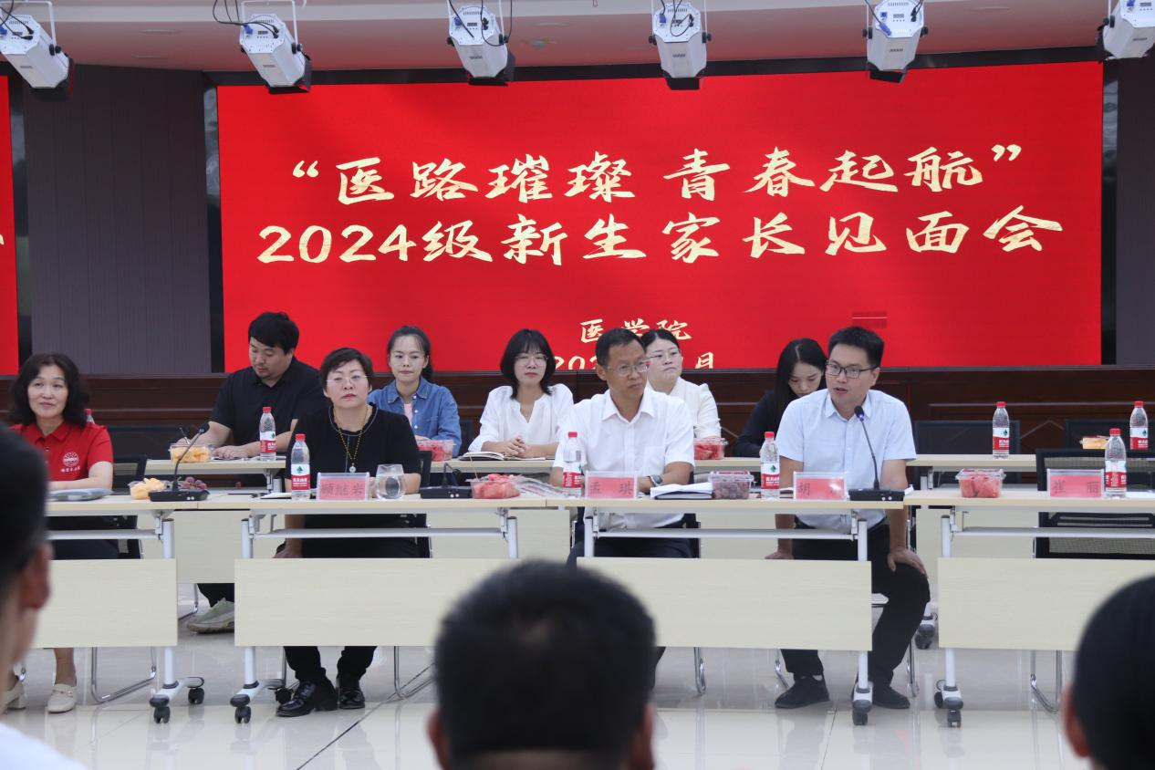 胡斌详细介绍了学院情况,对师资队伍、实验室建设以及附属医院进行了讲解,让家长们对学院有了更深入的了解。