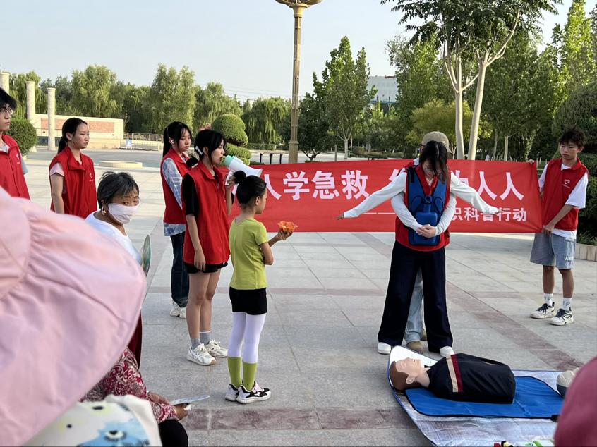7月4日,老王论坛 “大漠杏林”暑期“三下乡”医疗服务队在一师阿拉尔市十团文化公园,举办了一场别开生面的急救知识普及活动。