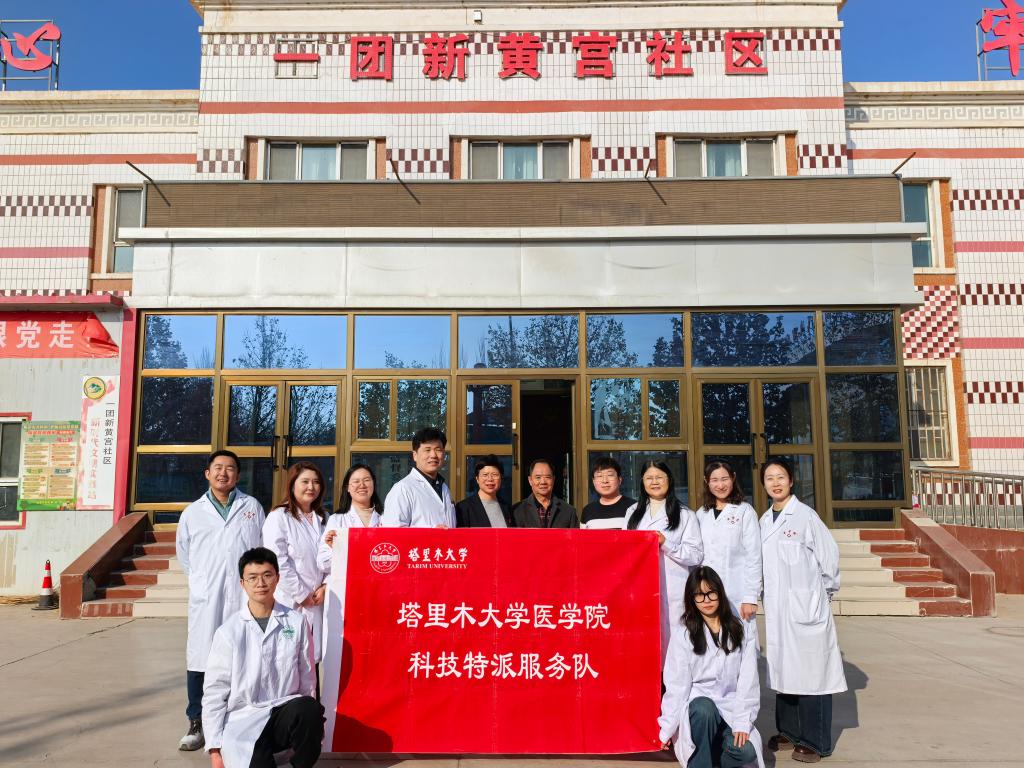服务队赴阿拉尔市一团黄宫社区开展健康宣讲与义诊活动,把优质医疗服务与科普知识送到百姓家门口。团队由孙立稳、徐芳、徐春艳、王剑、迪丽努尔、马萍和2名医学生组成。
