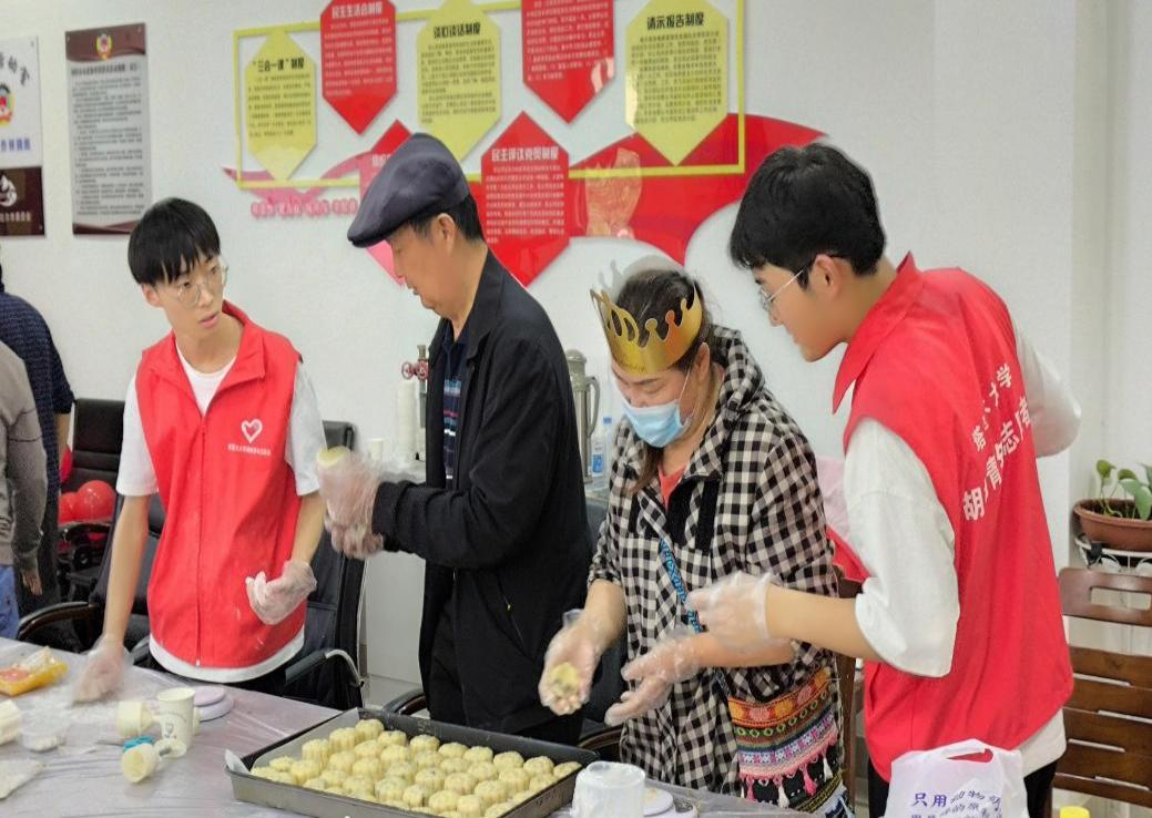 活动中,志愿者与老人们展开了深入的交流互动。志愿者们亲切地与老人攀谈,询问身体状况,分享生活趣事,欢声笑语回荡在活动现场。而月饼制作环节更是将活动推向高潮,志愿者与老人齐心协力,从揉面到包馅,再到压模成型,一枚枚月饼承载着浓浓的情谊。