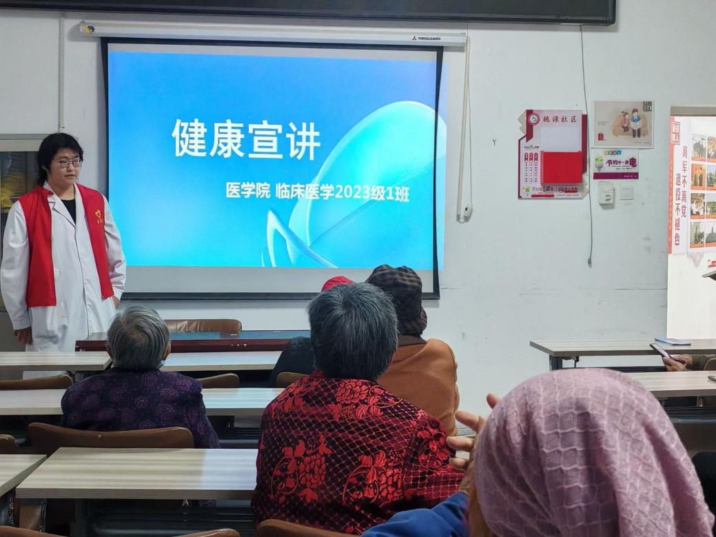 11月8日下午,老王论坛 临床医学2023级1班学生在桃源社区开展健康知识宣讲和义诊活动。