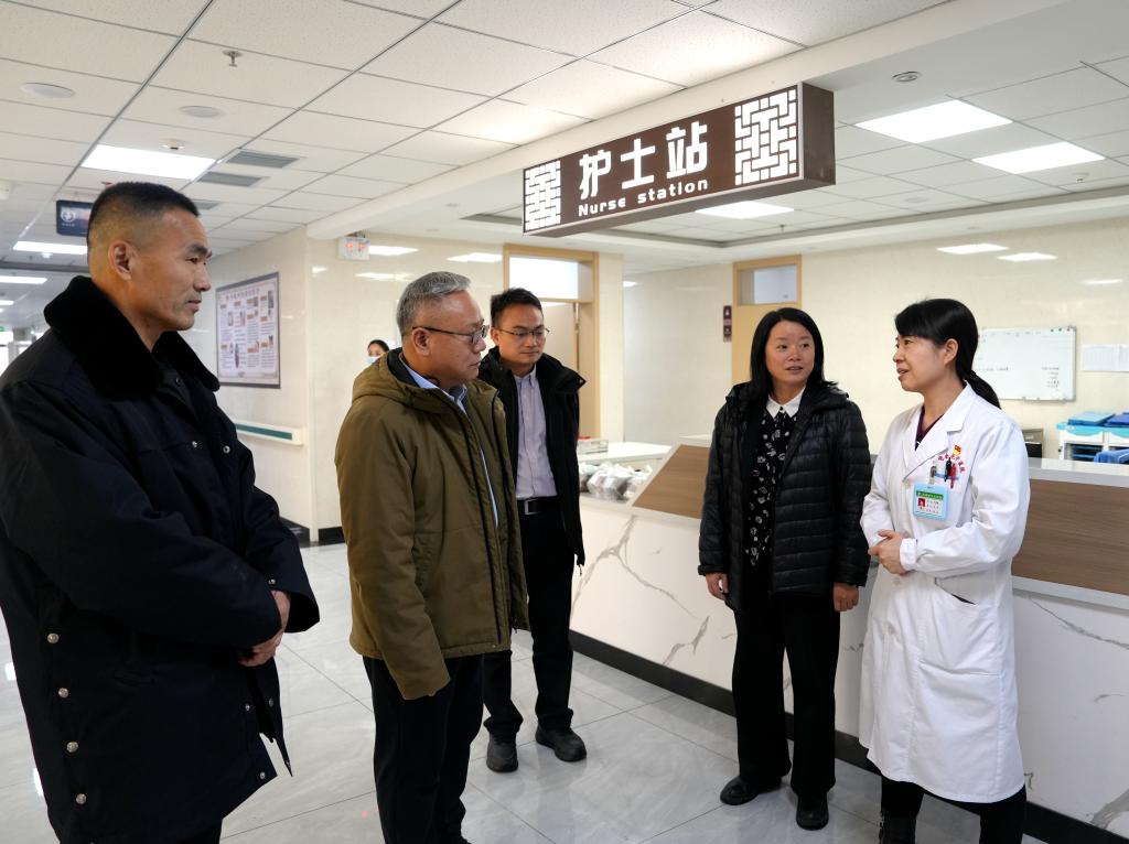 会后,谢建新一行在奎屯中医院领导陪同下参观了奎屯中医院临床科室及新院区建设情况并合影留念。